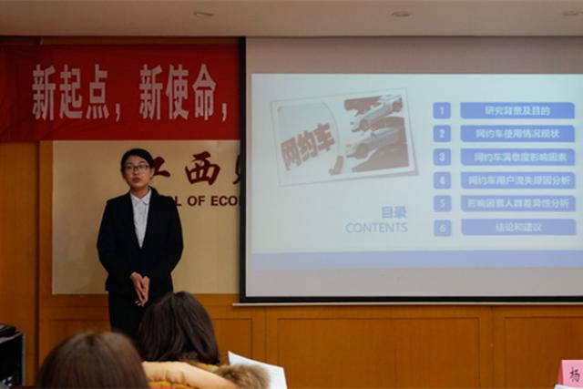 本次共有七支队伍参赛,选手们分别就自己感兴趣的社会现象展开分析研究,并进行发明制作或者撰写学术论文和调查报告。首先,每队按照抽签顺序通过幻灯片展示参赛作品,展示后由评委老师提问,选手们进行答辩。本次比赛选手们选择的主题涉及面广、包罗社会万象,城乡大学生学业表现差异、网约车满意度及用户流失、粉丝经济商业模式、农村公共品供给对精准脱贫的影响、大数据时代到来、乡村农村固定资产投资变动机制和自然农法农业发展态势都是选手所关注的,涵盖了学习、生活、农业等多个方面。展示过程中,每队成员间的默契配合和主讲人清晰流畅的思路,显示出选手们为比赛付出的努力。每队展示完,评委老师们都根据自己的经验和看法,结合历届比赛,从采样方法、分析方法、思考是否全面、逻辑顺序等角度指出选手们的不足和精彩之处,并提出许多专业性建议,选手们耐心听取了老师的建议,现场的同学都表示受益匪浅。