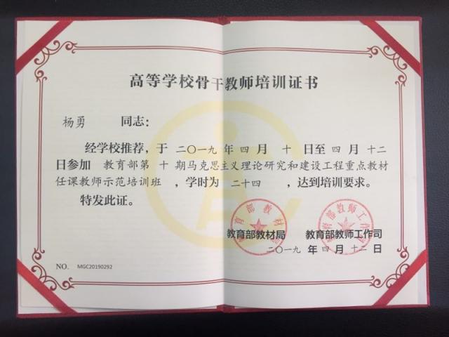为深入学习贯彻习近平新时代中国特色社会主义思想和党的十九大精神,落实全国教育大会精神,推动党的理论创新成果进课堂,教育部教材局于4月9号至12号,组织开展了教育部第十期马克思主义理论研究和建设工程重点教材任课教师示范培训班。本次示范培训班共培训《中国经济史》、《管理学》、《民法学》等十部马工程教材,亚洲色吧 杨勇老师参加了《中国经济史》课程培训。