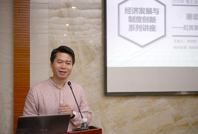 报告前段,李世彤老师以生活中的事例及当下社会热点问题为引,为同学们分析“现代经济的影响因素”并阐述当前对经济影响最大的负面因素为“失信”这一观点。紧接着,李老师再次举出晚清和宋朝的两个毁约事例,并揭示失信将会导致产业链崩溃,以此强调信用的重要性,引出了此次报告会的主题——中美贸易战。由于当前中国经济并未转好,中国产能大规模向东南亚转移,美国此次向东南亚国家征收重税,李老师表达出中美对抗会阶段性缓解,最后中美会和解来解决贸易战的个人观点,并提出对未来中国“经济不喜,股市不悲,楼市不惊”的看法。最后就中国未来什么行业具有巨大的机遇进行了探讨。