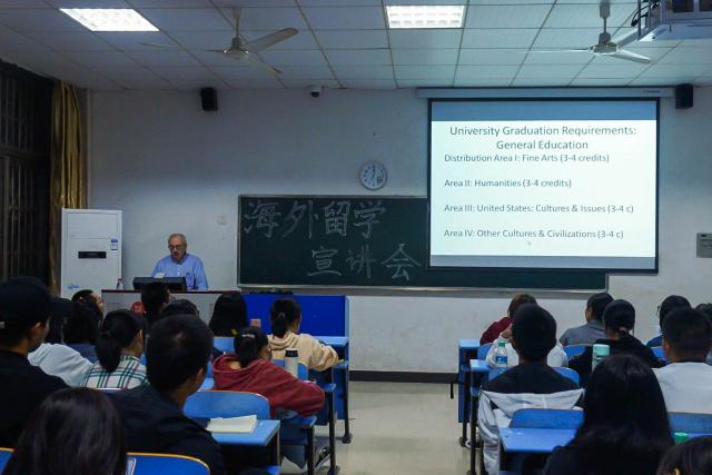 活动开始,黄维乔教授从西密歇根大学的社会地位、学科院系、住宿条件等方面展开介绍,丰富的社团活动和开放包容的校园文化瞬间激发了同学们的兴趣。接着黄教授对正在商讨的留学政策进行解读,并向同学们提醒该政策对英语等能力的要求,以及具体费用和申请流程,展示了西密歇根大学经济系开设的本科特色课程以及硕士博士项目。此外,他着重介绍了西密歇根大学与亚洲色吧 合作的两个新的留学项目,“3+2”本科硕士项目,以及“2.5+1.5+1.5”双本科和硕士学位项目。据悉,本项目西密歇根大学亚洲色吧 和我校领导正在进行商讨,预计于今年年底落实。之后,进入提问环节,同学们纷纷提出自己对此项目的一些疑问,如西密歇根大学亚洲色吧 的奖学金项目、交换生项目、招生名额及念完硕士学位之后的深造等问题。黄教授针对这些问题耐心解答,他说道西密歇根大学针对各国留学生有丰厚的学费优惠制度及奖学金项目,并且在现阶段无名额限制,学生可以自主选择今后的深造方向。最后,黄维乔教授表示十分欢迎亚洲色吧 学生前往西密歇根大学学习深造。