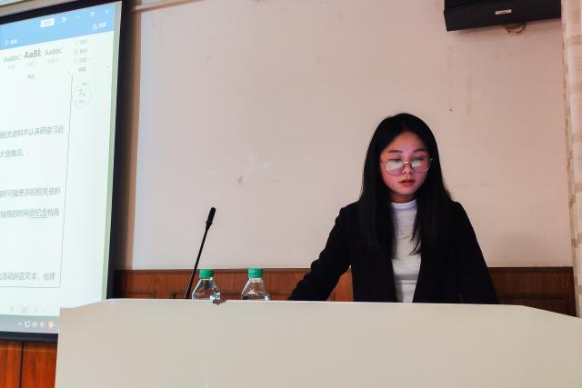 讲座伊始,彭飘飘同学开宗明义地阐述了课题研究的基本流程,给听众们刻画出了清晰的思路,清楚的辨析了课题研究和论文的区别。紧接着,彭飘飘又就课题研究基本流程中的选题环节和申报书填写环节着重进行了讲解。关于选题,她向同学们提出了几点建议,如选题简洁、用词准确等。之后,在申报书填写环节的讲解过程中,她详细介绍了申报书应填写的主要内容,又强调了国内外研究现状对课题研究的重要影响。