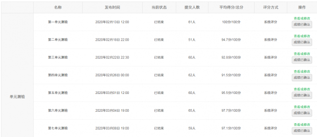 第七、发布单元测验题和课后作业。根据教学进度状况,定期发布预先准备好的教学单元测验题和课后作业。
