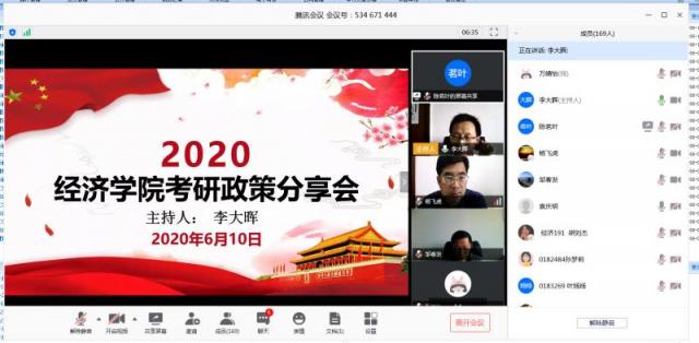会议还邀请了各专业导师组组长为同学们介绍专业学科情况。西方经济学专业导师组组长袁庆明教授由西方经济学基本含义开始,介绍了其独特的优势;人口、资源与环境经济学专业导师组组长黄和平教授说明了人口、资源与环境经济学的综合性和实用性;政治经济学专业导师组组长彭新万教授从师资力量、培养目标、研究方向和就业率等几个方向展示了政治经济学独特的魅力;国民经济与管理专业导师组组长王守坤教授为同学们总结了包括明确导师、选择适合的学习方法、加强写作能力等考研准备要素;资产评估专业导师组组长余炳文副教授介绍了该专业的研究生学习与其他专业在学制、导师和预学就业情况。李大晖副书记补充道:“要有考得上的决心和信心,也要有考不上的心理准备,最好在对学校和专业进行充分了解后制定适合自己的目标。” 分享会的最后,数位同学就有关考研的各类事项向老师们提出问题,各位老师也积极为大家答疑解惑,交流环节轻松而愉快。
