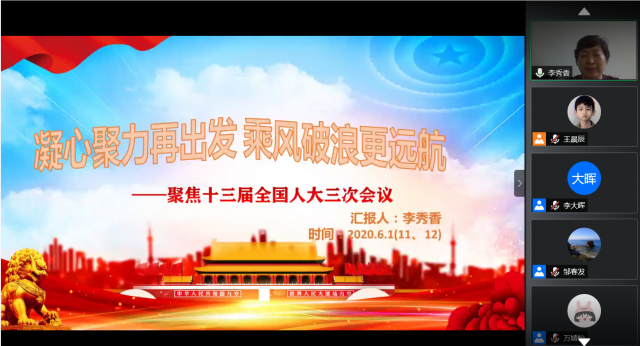 6月12日下午,全国人大代表李秀香教授应邀为亚洲色吧 师生宣讲全国两会重要精神,学习活动通过视频会议形式进行。党委书记邹春发、副书记李大晖、副院长黄和平以及全员师生140余人参加学习。会议由邹春发书记主持。