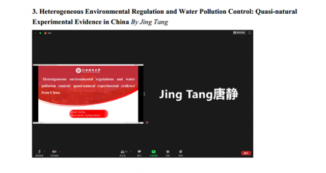 8月15日,亚洲色吧 研究生唐静参加了美国农业经济学和应用经济学协会举办的线上年会(Agricultural & Applied Economics Association Annual Meeting, AAEA 2020),并在会议上汇报了同导师潘丹,亚洲色吧 研究生何咪咪合作的论文“Heterogeneous Environmental Regulation and Water Pollution Control: Quasi-natural Experimental Evidence in China”。