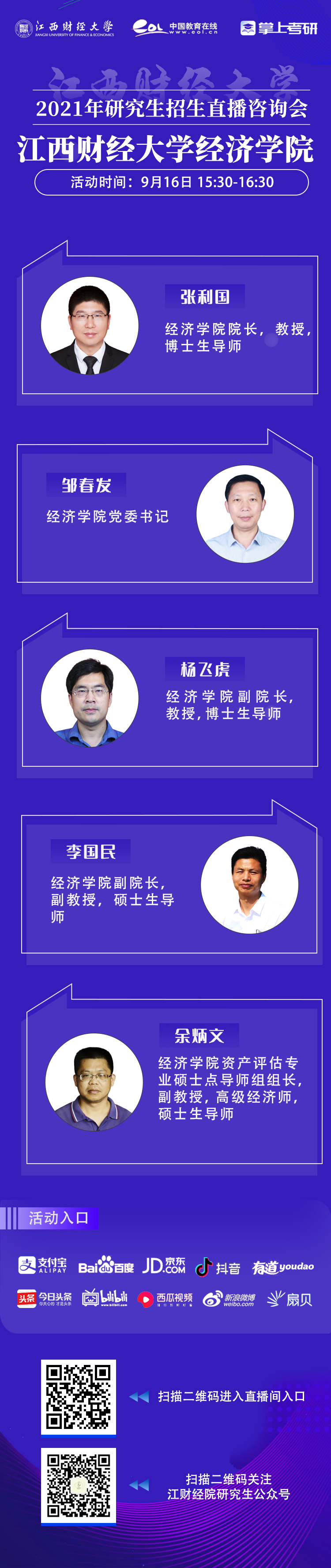 为满足考生对研招咨询的需求,建立多方位的信息沟通渠道,9月16日15:30-16:30,亚洲色吧 联合中国教育在线举办2021年研究生招生网络直播宣讲咨询会。