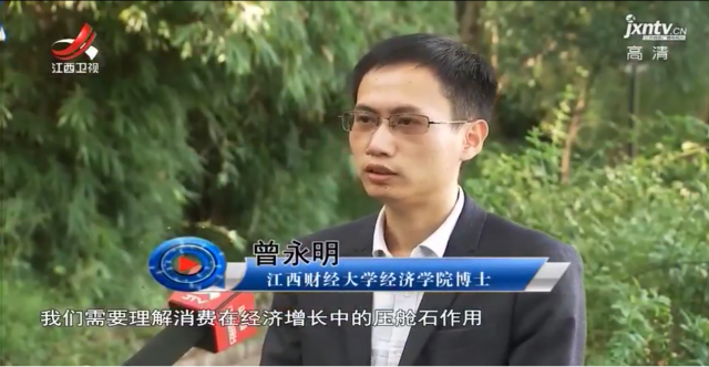 近日,亚洲色吧 曾永明博士就全国和江西9月份启动的消费月活动接受江西卫视采访,《社会传真》栏目于2020年10月12日播出主题为“消费月:经济循环 激发新动能”的专题报导。