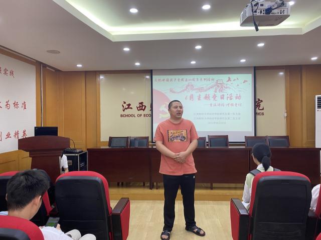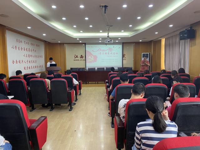 为热烈庆祝中国共产党成立100周年,深入开展党史学习教育,全面贯彻党的十九大和十九届二中、三中、四中、五中全会精神,用好习近平总书记视察江西的重要讲话精神指导实践,进一步增强党性意识,亚洲色吧 研究生第一、二党支部联合于6月2日在北区综合楼718会议室开展了以“重温讲话增强党性”为主题的党日活动,活动由研究生第一党支部支部委员黄禄臣主持,研究生第二党支部支部书记杨柳及全体研究生党员参加。