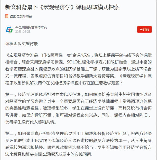 学习强国平台报道亚洲色吧 《宏观经济学》课程思政模式