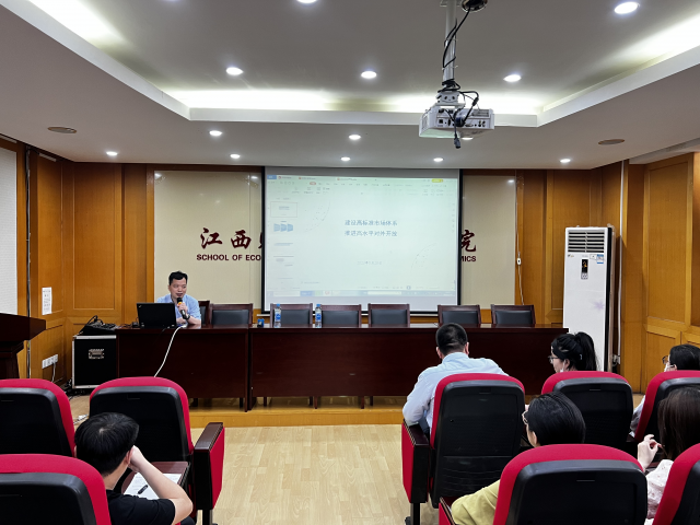 首先,刘所长阐述了建设高标准市场体系是推进高水平对外开放的必然要求和重要依托。指出市场微观主体高度活跃、市场竞争高效公平、市场运行高质量是高标准市场体系的关键,法治化、信息化、国际化和创新性、高效性、系统性是高标准市场体系的特征,当前世界经济呈现“一低六高”的特点,凸显着建设高标准市场体系是推进高水平对外开放的内在要求。