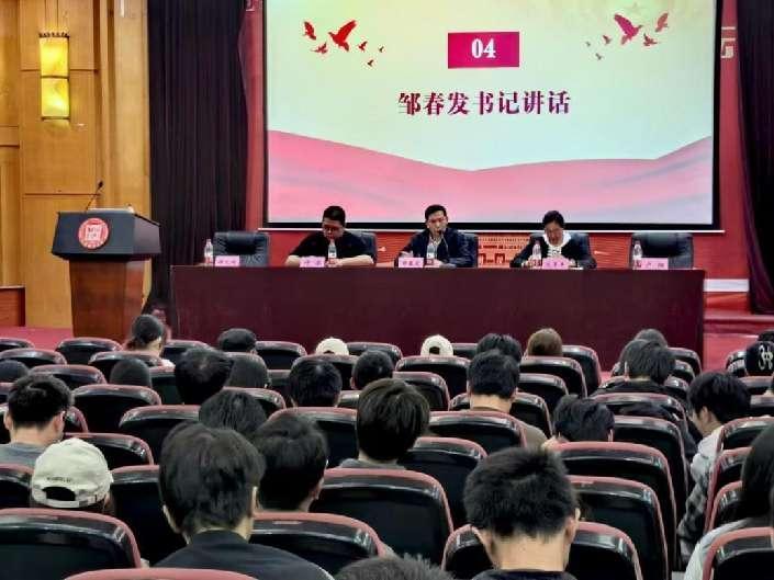 会上,邹春发书记特别指出学院在22级学生步入大三学年召开本次大会的意义。他希望通过此次大会,能够切实帮助大三学子在考研的征途中破解难题,更加全面认识就业形势。让同学们在将来考研、求职的路上准备更加充分,表现更加出众,前途更加光明。最后,邹书记向同学们提出了三点建议:一是建议同学们提前布局,打牢基础,要加强自身锻炼以完善个人简历,努力提升就业竞争力;二是建议做好考研规划,精心规划备考时间,确保复习效率最大化;三是建议同学们保持积极主动的态度,珍惜时间,积极认真备考。希望大家能够孜孜不倦,勤勉为功,为自己的大学生活画上一个圆满的句号。