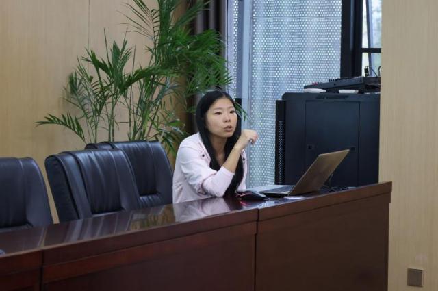 在江西洪城城北污水处理有限公司,生产部俞雅婷部长首先为同学们进行专业知识传授,在室内通过PPT展示、生动图像和详细讲解,为同学们讲解生活污水处理流程、生产质量控制,以及各生产环节质量标准等专业内容。