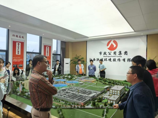 现场观摩结束后,回到洪城环境综合楼沙盘模型前,公司党支部书记万勇华亲临现场,为同学们答疑解惑。他结合沙盘模型为同学们详细讲解污水处理的全过程和关键节点,并耐心回答了同学们提出的各种问题,现场交流气氛较为热烈。