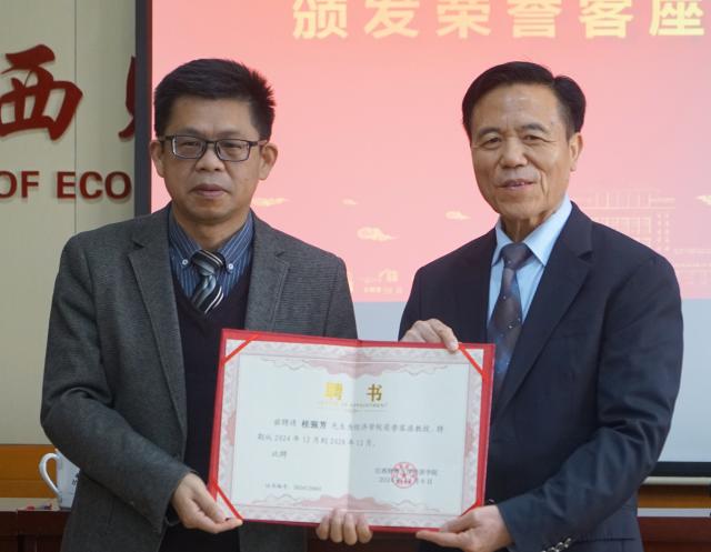 在讲座之前举办了桂强芳先生三个简短的仪式。桂强芳先生向学校图书馆和亚洲色吧 捐赠了由他编撰的大型图书《走遍全球》系列丛书(150万字),远翠平副书记等接受赠书,并颁发了图书捐赠证书。在多次为亚洲色吧 设立“桂强芳奖学金”再次设立奖学金,邹春发书记频发设奖证书,余炳文副院长为桂强芳先生颁发了荣誉客座教授聘书。