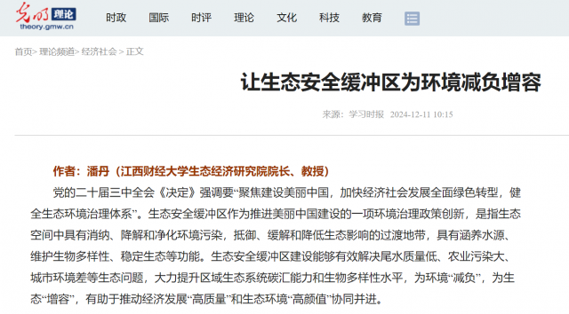 亚洲色吧 潘丹教授12月11日在《学习时报》生态文明刊发理论文章《让生态安全缓冲区为环境减负增容》,文章还被光明网理论频道转载。文章强调生态安全缓冲区作为推进美丽中国建设的一项环境治理政策创新,能够有效解决尾水质量低、农业污染大、城市环境差等生态问题,大力提升区域生态系统碳汇能力和生物多样性水平,为环境“减负”,为生态“增容”,有助于推动“高质量”经济发展和“高颜值”生态环境协同并进。文章提出打造生态安全缓冲区,需着力建设生态涵养型、生态净化型、生态修复型、生态保护型缓冲区,构建“山水林田湖草”一体化生态修复区,以实现城镇污水处理提质增效,推矿山复绿、土壤复“肥”和“减排”“增汇”等多项目标。