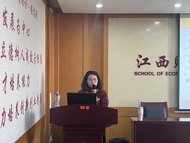 生态经济研究院院长潘丹教授以“论文写作的几点体会:选题、撰写和投稿”为主题,从论文的选题、撰写、投稿等方面进行了详尽的分享,并围绕文献检索与管理、大数据时代的论文数据获取等分享了宝贵技巧和经验。最后,潘丹教授就从事研究工作提出建议,为同学们进行学术研究指明方向。