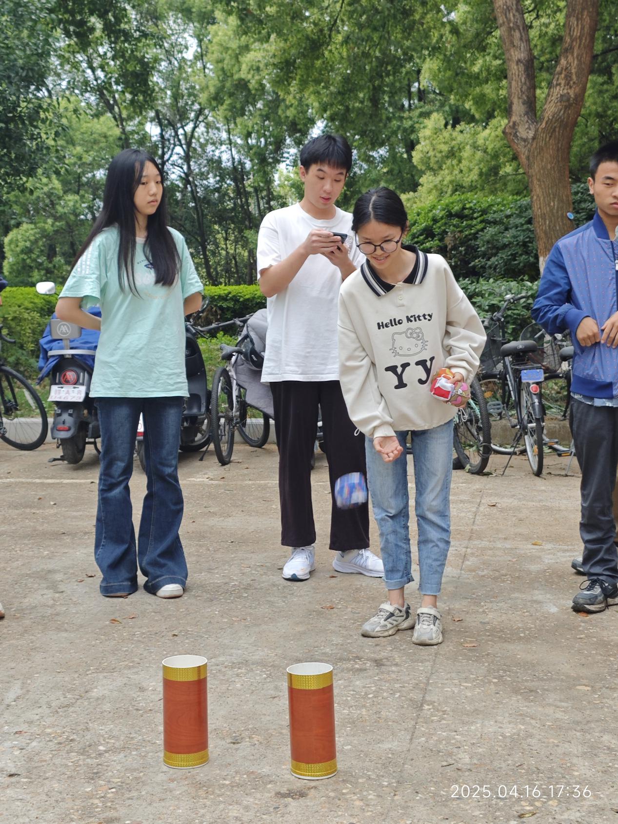 活动现场精心设计多元互动环节,构建沉浸式社交体验场景。在“不倒森林”项目中,参与者通过团队协作实现道具稳定传递,强化彼此信任;“趣味沙包”环节考验策略运用与手眼协调能力;传统“投壶”游戏融入现代竞技思维,激发创新探索精神;“跳绳接力”则通过体能与节奏的协同配合,展现团队凝聚力。活动引导员全程把控活动节奏,确保各环节安全有序推进。活动现场气氛热烈,参与者相互鼓励、协同攻关,充分展现新时代大学生积极向上的精神风貌。
