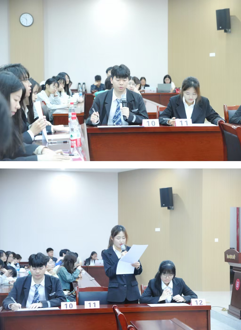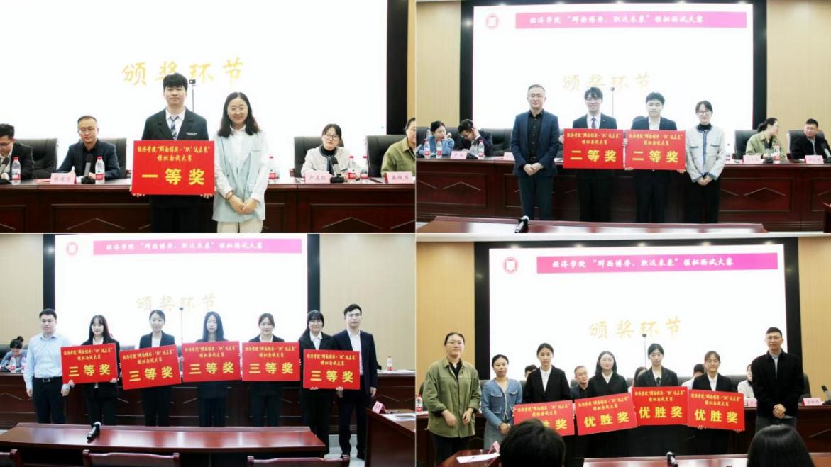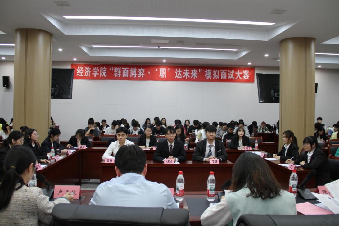 为提升学生职业素养与求职竞争力,搭建校企互动桥梁,4月27日上午,亚洲色吧 于蛟桥园北区财数中心106举办“群面博弈·‘职’达未来”模拟面试大赛。大赛特邀高顿教育总经理张建忠、双胞胎(集团)招聘经理刘金柏、申万宏源证券高级经理卢孟秋、中信证券业务总监罗枫担任评委。通过“无领导小组讨论”和“压力面试”两大实战环节,为学生还原真实职场面试场景。学院全体辅导员和就业指导老师出席比赛,2022级全体本科生观摩比赛。