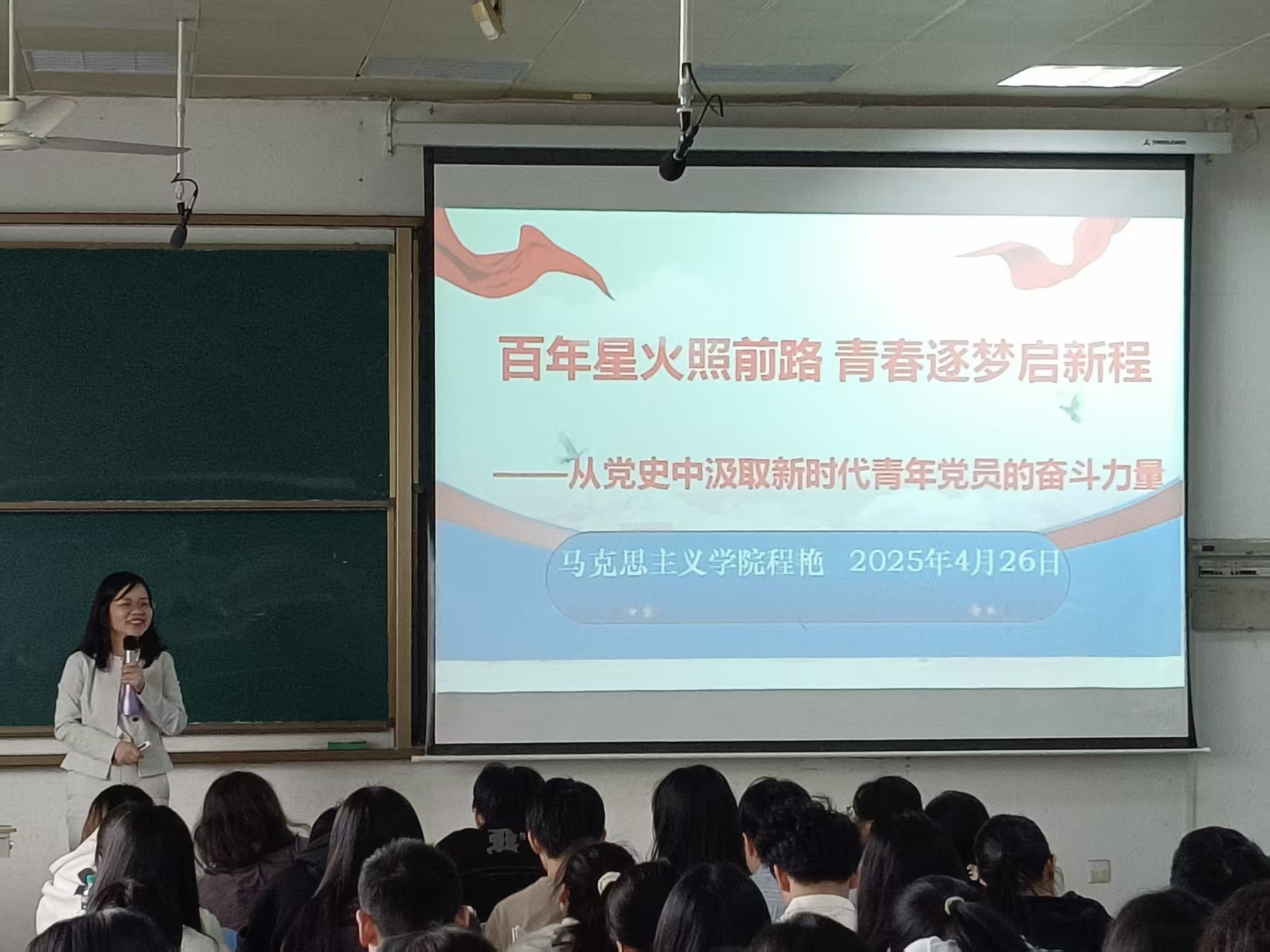为引导入党积极分子从百年党史中汲取奋进力量,明确新时代使命担当,亚洲色吧 于2025年4月26日在1102教室开展了第26期分党校入党积极分子培训班党课第三讲,此讲由亚洲色吧 中特中心副主任,硕士生导师程艳讲授,主题为“解码百年党史中的‘青春密码’,新时代青年党员的使命与担当”。