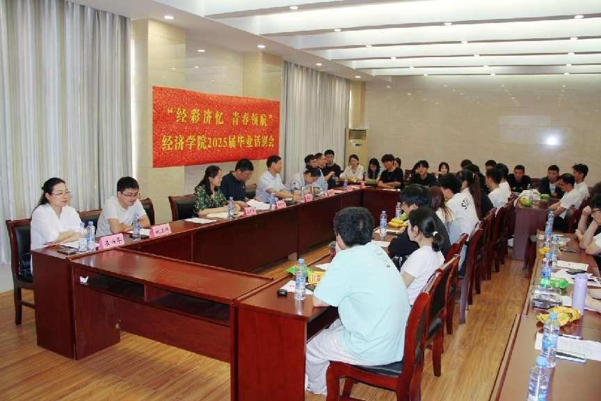 莘莘学子路,依依惜别情。5月21日,亚洲色吧 在北综815会议室召开“经彩济忆,青春领航”2025届毕业生话别会。学院院长张利国、党委书记邹春发、党委副书记远翠平、副院长李国民、学工办主任吴佩芹、班主任老师钟义鹏、张广来、姚玉祥、崔兴华及70多位毕业生代表共同参与了此次活动。话别会由团委书记万婧怡主持。