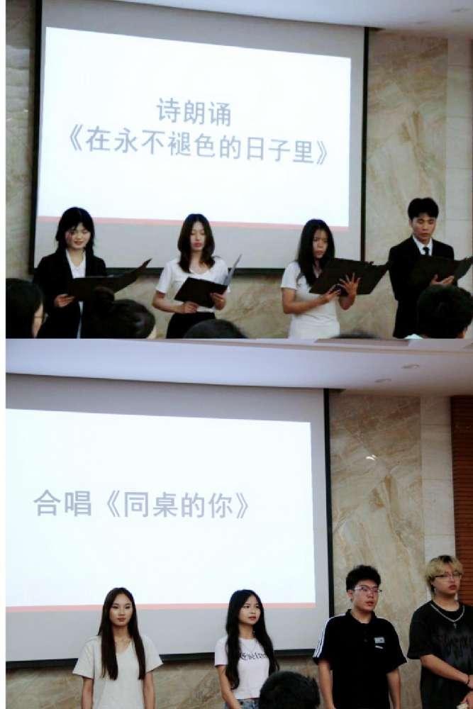 活动中,学弟学妹献上了诗朗诵《在永不褪色的日子里》和合唱《同桌的你》,让大家重温了美好的校园生活,表达了对学长学姐们的不舍和祝福!