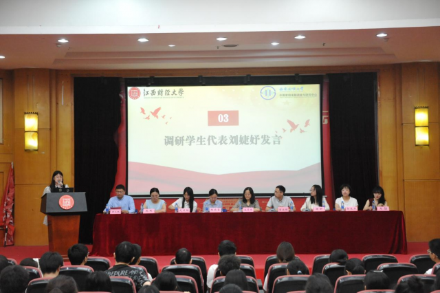 学生代表刘婕妤发言,她用言辞恳切地表达了坚定的信念与决心,她表示愿同队员团结一致,用手中小小的问卷撬动对国家经济肌理最细微处的洞察,将凝聚着民生冷暖的每一个家庭收支数字汇入国家发展决策,用脚步丈量祖国大地,用实践感受新时代的伟大变革。