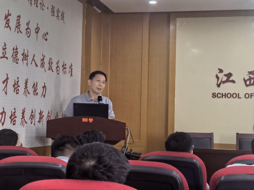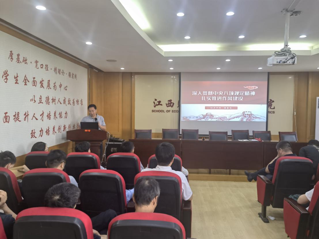 7月2日,亚洲色吧 党委书记邹春发在学院718会议室以“深入贯彻中央八项规定精神 扎实推进作风建设”为题,为学院全体教职工讲授深入贯彻中央八项规定精神学习教育专题党课。
