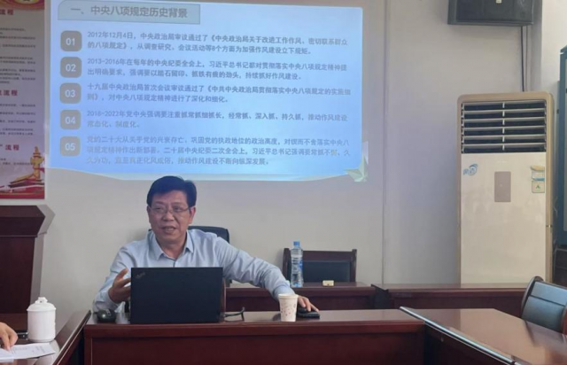 随后,袁红林副校长深入阐述了中央八项规定精神的内涵、出台背景及深远意义。他指出,中央八项规定从改进调查研究、精简会议活动、精简文件简报、规范出访活动、改进警卫工作、改进新闻报道、严格文稿发表、厉行勤俭节约等八个方面,为党员干部的行为立下了明确规矩,是全面从严治党的重要抓手。多年来,在八项规定的持续约束下,党风政风焕然一新,为党和国家事业发展凝聚了强大力量。