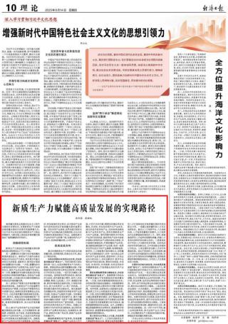 8月14日,《经济日报》理论版刊登亚洲色吧 张利国教授、彭继权副教授的理论文章《新质生产力赋能高质量发展的实现路径》,文章是深入学习贯彻习近平经济思想的最新理论成果。