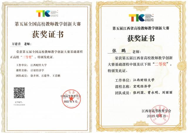 学院一直高度重视教师教学发展,通过搭建培训平台、赛前演练活动全方位支持教师参加各类教学竞赛。在今年5月份由江西省高等教育学会举办的第五届江西省高校教师教学创新大赛中,亚洲色吧 教师又一次斩获佳绩,由张鹏教师率领的《宏观经济学》课程团队荣获省级二等奖。