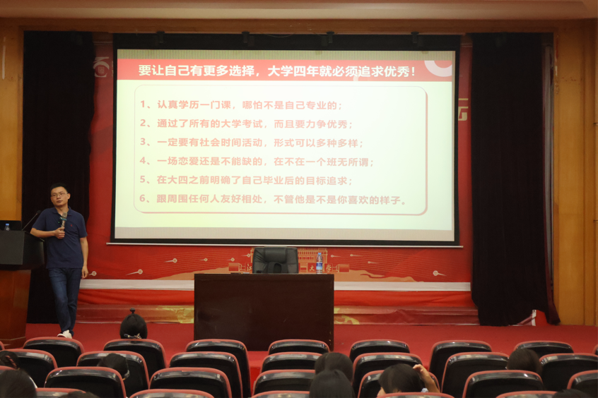 最后,学长从学业、实践、目标、情感、人际五个维度给出规划建议,为新生规划大学生活提供了清晰的行动指南。此次讲座不仅帮助新生明确了大学努力的方向,更激励大家以勤奋为舟、以目标为帆,在未来的大学生活中书写属于自己的精彩篇章。