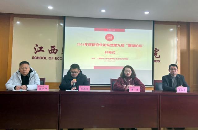 2024 School of Economics Graduate Student Forum and the 9th Poyang Lake Forum Successfully Held On the morning of December 26, the 2024 Graduate Student Forum and the 9th Poyang Lake Forum, organized by the School of Economics / Ecological Economy Research Institute, was successfully held in the Lecture Hall 718 of the North Comprehensive Building, Jiaoqiao Campus. The theme of this forum was Developing New Quality Productive Forces to Promote Integrated Urban-Rural Development. It aimed to enhance the quality of graduate student training, enliven the academic atmosphere for graduate students, exercise students' scientific research abilities, and strengthen academic exchange. This year's forum attracted widespread attention from teachers and students both within and outside the university. Doctoral and master's students, as well as outstanding undergraduates, from many universities including Hunan University, Anhui University of Finance and Economics, North China University of Water Resources and Electric Power, Jiangxi Agricultural University, and Jiangxi Normal University, actively submitted papers, with a total of 30 high-quality papers presented. The opening ceremony was hosted by Professor Yu Bingwen, Vice Dean of the School of Economics. Professor Huang Heping delivered the opening address. Professor Pan Dan, Dean of the Ecological Economy Research Institute, Professor Wang Shoukun, Vice Dean of the Digital Economy School, and other faculty members from within and outside the school attended the opening ceremony.