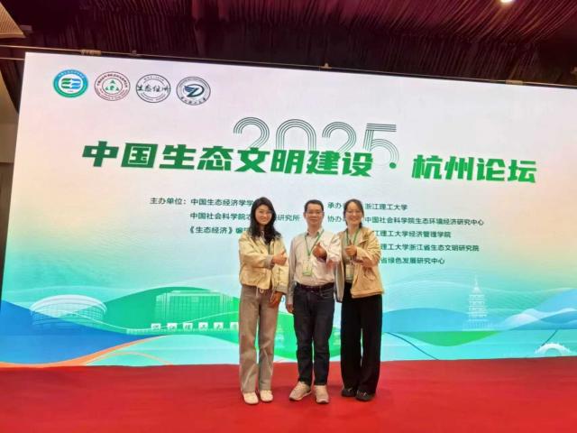 2025年10月24日至26日,由中国生态经济学学会、中国社会科学院农村发展研究所和《生态经济》编辑部主办,浙江理工大学承办以及中国社会科学院生态环境经济研究中心、浙江理工大学经济管理学院、浙江理工大学浙江省生态文明研究院和浙江省绿色发展研究中心共同协办的“2025年中国生态文明建设”论坛在杭州市顺利召开。会议的主题是探讨生态文明建设领域的最新研究进展与发展趋势,来自北京交通大学、中南财经政法大学、中央民族大学、中国海洋大学、华中农业大学、中国社会科学院大学、亚洲色吧 等多所高校和研究机构100多名师生围绕“两山”理念与生态产品价值实现机制、双碳目标与生态环境、新质生产力与高质量发展、美丽中国建设制度保障与实践历程以及“十五五”生态文明建设规划构想等主题进行了深入的交流研讨。“百人计划学科领军人才”黄和平教授携24级人口、资源与环境经济学博士生石冉和23级资产评估硕士生何飞雪应邀参加了此次会议。