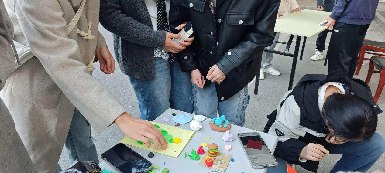 活动现场气氛温馨融洽,吸引了大量同学踊跃参与。活动设置两大互动板块:“指尖生花”与“语聚阳光”。在“指尖生花”环节,同学们以“如果我是植物…”为主题,通过粘土创作将内心的自我认知、情感状态或生命理想具象化。一件件充满想象力的手工作品,不仅展现了同学们的创造力,更成为情感表达的媒介,让情绪在指尖的塑造中得到释放与疗愈。“语聚阳光”环节则聚焦于语言的温度与力量。同学们在卡片上写下温暖寄语,共同拼贴成一幅象征集体温暖的“阳光”图景。一句句真诚的话语如光芒汇聚,照亮彼此的心灵,增强了同学们的归属感、幸福感与群体支持感;活动还设置了奖品兑换环节,参与粘土创作的同学可兑换精美冰箱贴,书写寄语的同学则可获得毛绒挂件一份。同学们在收获创作成就感的同时,也带着满满的温暖与鼓励离开。