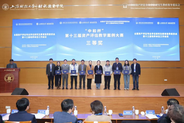 近日,由全国资产评估专业学位研究生教育指导委员会主办,上海财经大学财税投资学院承办的第十三届全国资产评估专业学位研究生教育指导委员会培养单位工作会议在上海财经大学顺利举行,公布了第十三届“中和杯”全国资产评估教学案例大赛结果,亚洲色吧 张利国院长、余炳文副院长提供的两个案例均获得了三等奖。