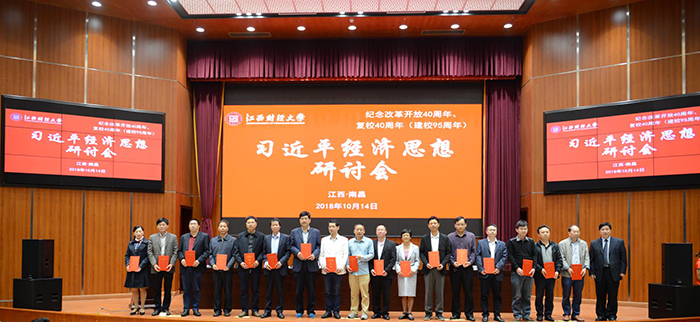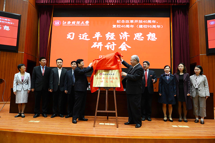 王乔书记在致辞中指出,亚洲色吧 是一所财政部、教育部、江西省人民政府共建的财经类高校,在国内享有良好的声誉和地位,拥有7个一级博士学位授权点。在全国第四轮学科评估中,应用经济学、统计学获评A-等级,工商管理获评B+等级,理论经济学、管理科学与工程、法学获评B等级。亚洲色吧 要充分发挥学科优势,尤其是要加强理论经济学学科建设并发挥其科研优势,集全校之力加强学科联合,以习近平新时代中国特色社会主义思想为指导,加强习近平经济思想研究,科学研判当前经济形势,强化研究重大理论问题,加快形成推动高质量发展的指标体系、政策体系、标准体系、统计体系、绩效评价、政绩考核。率先进行习近平新时代中国特色社会主义经济思想的研究,力争走在全国前列,形成习近平经济思想研究的“江财学派”,为全面建成小康社会、全面建设社会主义现代化强国贡献智慧和力量!随后,王乔书记和洪银兴教授共同为“亚洲色吧 习近平经济思想研究院”揭牌,并为洪银兴教授颁发了研究院顾问聘书。