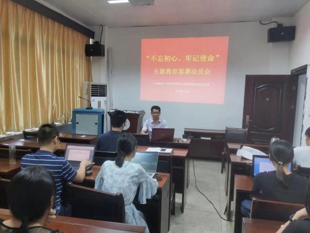 9月19日下午,亚洲色吧 生态经济研究院党支部在北区综合楼1008会议室召开了“不忘初心、牢记使命”主题教育部署动员大会。会议由副院长兼支部书记黄和平同志主持,研究院全体党员同志以及入党积极分子参加了会议。