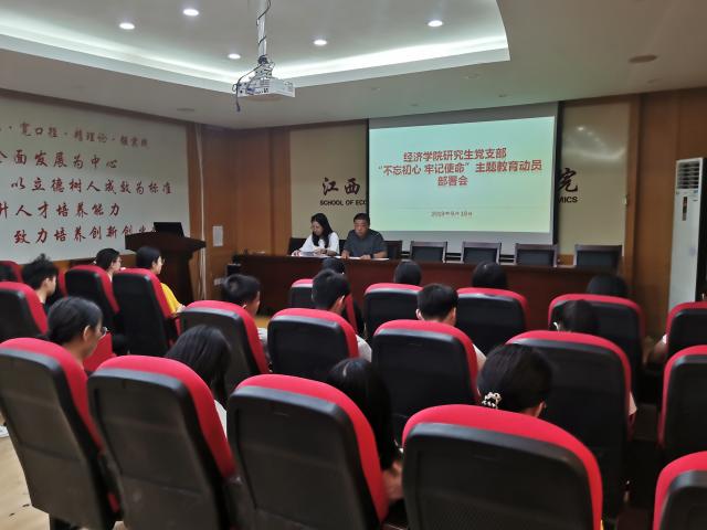9月19日晚上,亚洲色吧 研究生党支部在北区综合楼7楼会议室召开了“不忘初心、牢记使命”主题教育部署动员大会。会议由支部书记郭勇同志主持,研究生全体党员同志以及入党积极分子参加了会议。