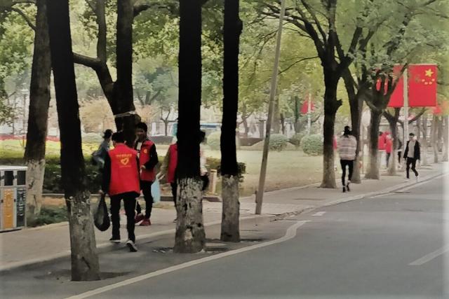 活动开始前,青协工作人员组织同学们在蛟桥园校区崛起广场处集合,并完成小组设立及分配好卫生区域等工作。之后,同学们拿着自备的清洁工具,积极地投身于校园清扫中。秋风瑟瑟,天气转凉,身着红色马褂的同学们忙碌的身影出现在广场上,宿舍楼下,综合楼主干道上,他们细致严谨,耐心地清扫着零落在地上的落叶,细心地将台阶下,草坪中,道路缝隙里的细小垃圾清理干净。清扫过程中,同学们相互帮助,集体协作,不时还有人逗趣,气氛十分融洽,展现了经院学子团结友爱,吃苦耐劳的精神风貌。经过同学们两个小时的努力,清扫区域的地面重回干净整洁,文化雕塑和桌椅也变得一尘不染,崛起广场的红身影也各自归位准备晚课去了。