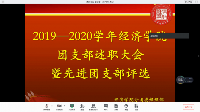 活动最后,李大晖副书记进行致辞,他先对各支部工作展示进行肯定。接着他特别提到,由于时期特殊,各团支部应该在配合防疫工作、学好线上课程的同时认真开展班会团建设,增加班级凝聚力。