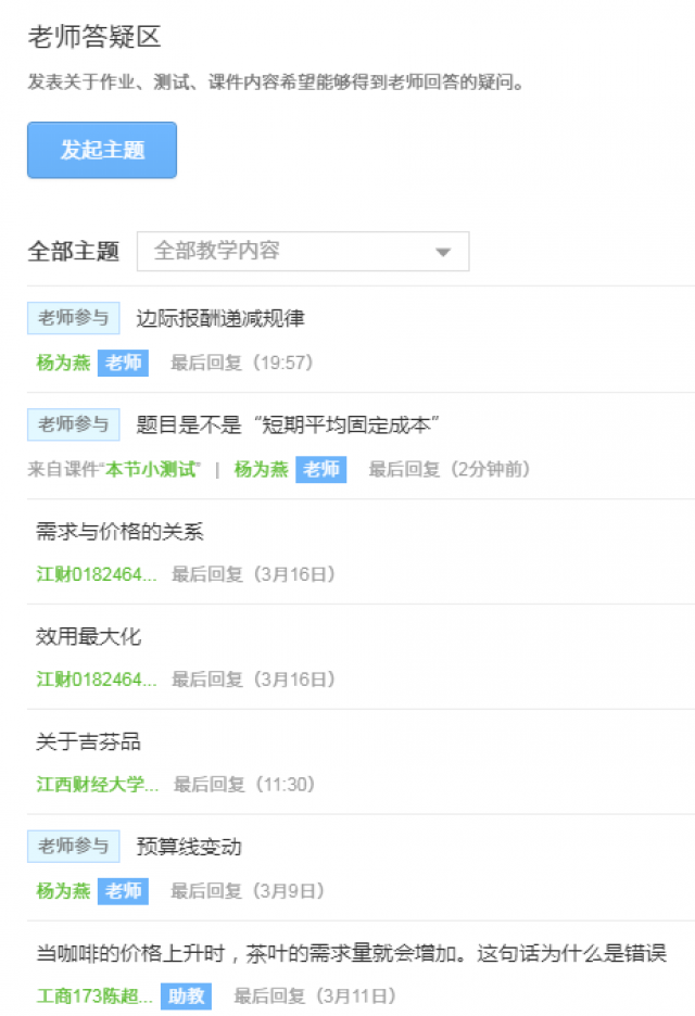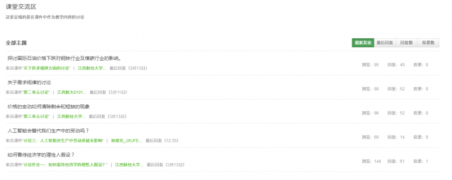 本学期《西方经济学》采用SPOC教学模式,是一种融合了实体课堂与在线教育的混合教学模式,它既融合了MOOC的优点,又弥补了传统课堂教学的不足。可以使教师和学生在一个“开放、共享、交互、协作”的空间,通过翻转课堂教学模式,全面增强课堂的互动性,充分体现“以学生为中心”“以产出为导向”的先进教育理念。