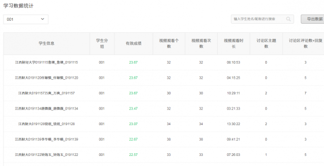 3.通过中国大学MOOC平台上的工具栏目查看学生在平台上的学习状况。