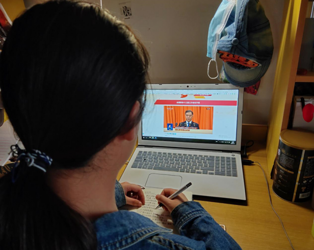 5月21日下午,全国政协十三届三次会议在北京人民大会堂开幕。亚洲色吧 本科生党支部组织学生党员通过学习强国、中新网等等平台观看直播。