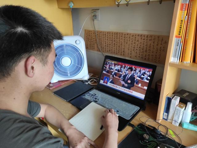 5月28日15时,十三届全国人民代表大会第三次会议在人民大会堂闭幕。因疫情正处于防控新阶段,应尽量减少聚集活动,亚洲色吧 本科生党支部组织学生党员线上观看会议直播。