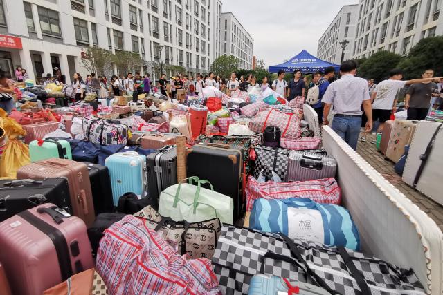 9月4日上午7:00工作按原计划有序开展,各班在工作负责人的带领下和志愿者的协助下分批次将行李搬运至放置点,依次完成行李装车、学生上车、清点人数等工作。现场秩序井然,速度快、效率高。车辆到达蛟桥22栋宿舍楼之后,为不影响后续工作,现场志愿者和19级男同学们迅速完成行李卸车,行李认领,相互帮助搬运行李。整项工作从早上7:00持续至上午11:00。邹春发书记在搬运现场,亲切地叮嘱同学们搬运物品时要注意安全,避免受伤。