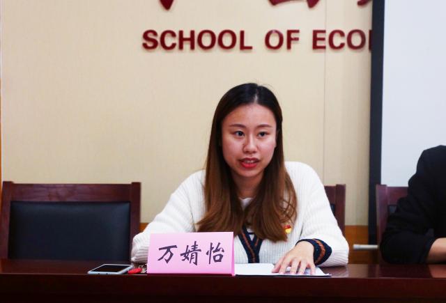 万婧怡老师首先对经院过去一年取得的成绩表示肯定,又结合疫情期间广大青年主动投身战“疫”的大背景强调了青年的责任之重,并向广大青年学生发起号召:第一,坚定理想信念,始终听党话、跟党走;第二,发奋成长成才,努力成栋梁、接好班;第三,勇于开拓创新,大胆蹚新路,抢先机。