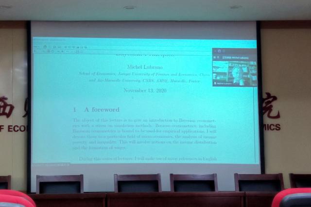 根据教学安排,亚洲色吧 于11月11-14日举办了第一阶段外教授课活动。本次活动邀请了法国艾克斯马赛大学Michel Lubrano(米歇尔)教授线上讲授“贝叶斯推断”。活动前亚洲色吧 学习部下发通知到各班进行活动宣传,各班同学积极响应。