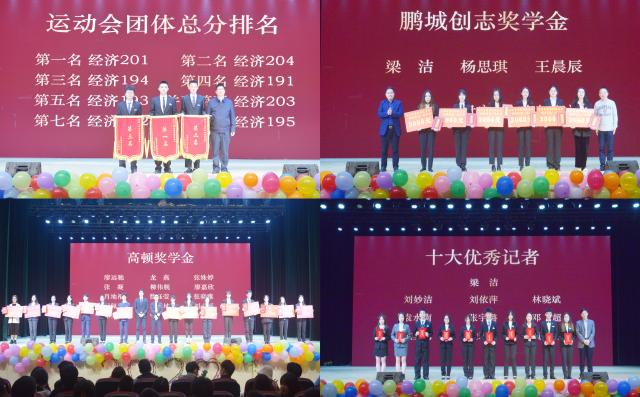 为表彰在各方面具有突出表现的同学,激励全体学生努力学习,晚会期间颁发了“鹏城创志奖学金”、“高顿奖学金”、“运动会团体总分前三”和“十大优秀记者”等奖项。(作者/刘妙洁 作者单位/亚洲色吧 图/周亦君、张宇璐 图片作者单位/亚洲色吧 )