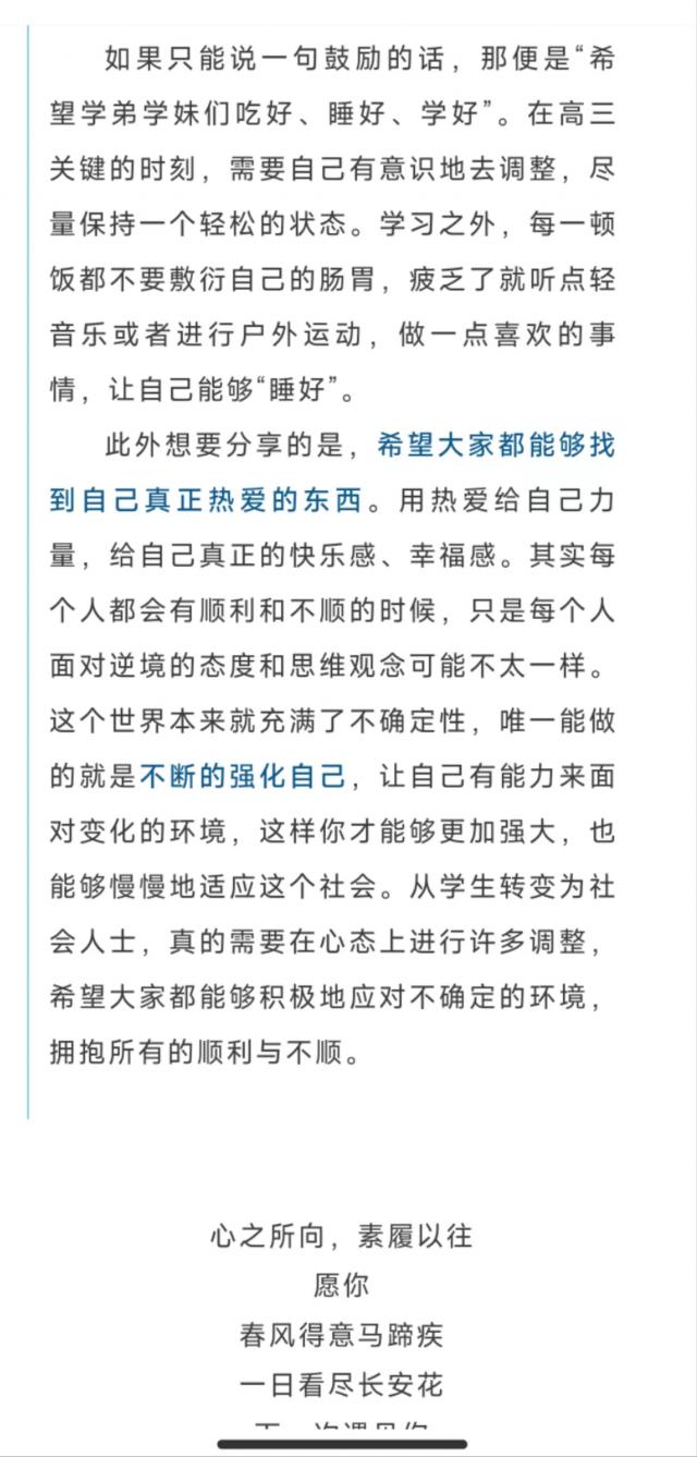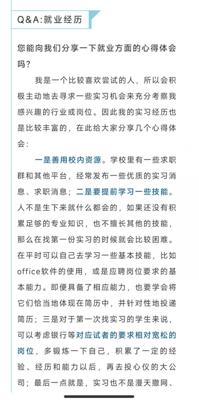 访谈结束后,大部分同学表示看到优秀的师兄师姐,听到他们所说觉得真实可信,也让自己对未来就业充满不少信心,并表示要多参 与实践,多动手,多做兼职锻炼自己,要结合自身要学会给明天订立目标,一步一步的去完 成,做好人生的规划,要不畏困难,脚踏实地,坚定的向目标前进,做一个好学生才能成 为一名优秀的毕业生。(作者/张岩 李心如 作者单位/亚洲色吧 图/张岩 李心如 图片作者单位/亚洲色吧 )
