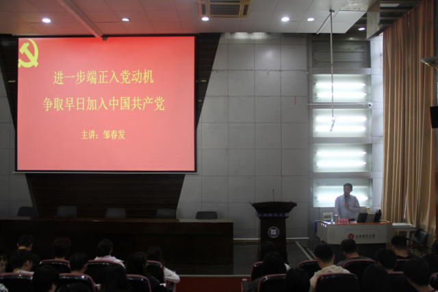 4月15日上午,亚洲色吧 于研究生院报告厅开展第二十四期入党积极分子培训班第一讲,主题为“端正入党动机,争取早日加入中国共产党”,由亚洲色吧 党委书记邹春发讲授。